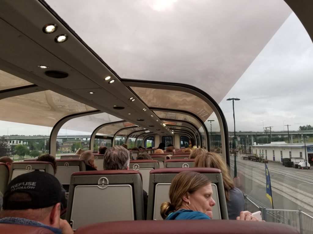 They offer two types of travel on this train, Goldstar class and Adventure class. I took the Goldstar class from Anchorage to Denali and the Adventure class from Denali to Fairbanks for comparison. The basic difference is that in Goldstar, you travel in a dome windowed car, meals and two alcoholic drinks are included. Every seat was taken by tourist. For Adventure class, a bistro car is available to purchase food and drinks, you only have large plate glass windows, and it was about 1/3 of the way full of common folk for half the price. In my opinion, Adventure class is the way to go.