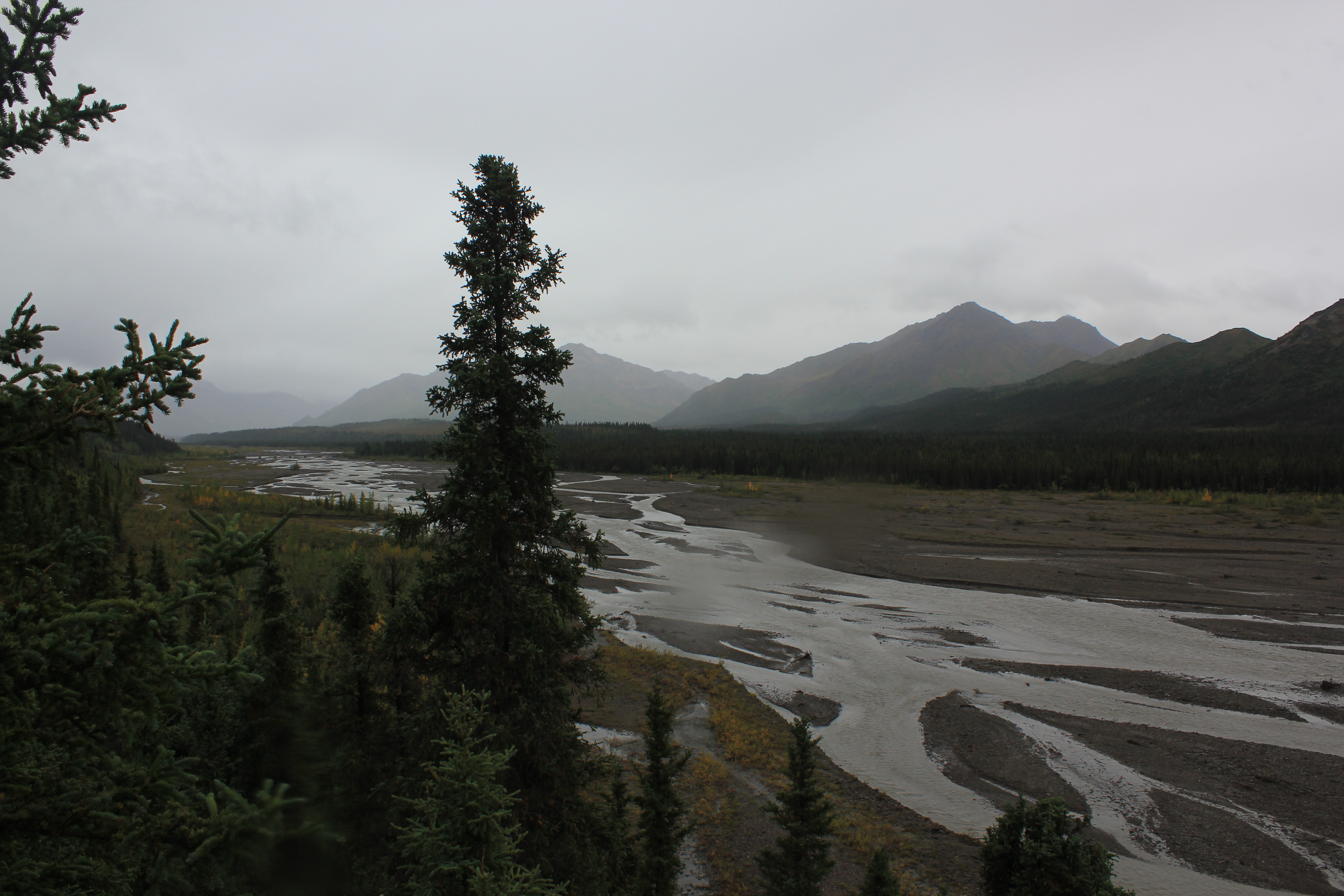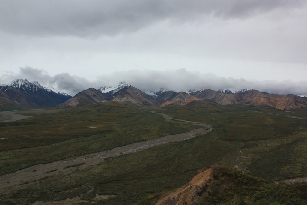 It’s at this point I realize how prevalent overcast conditions rule the weather this time of year. Our driver expressed concerns that the rainy weather might limit the chances of seeing wildlife along the road. It is also at this time that I find out that only 10% of tourist actually get to see an unobstructed view of Denali. Nonetheless, I’m enjoying my vacation and I’m still amazed at the rugged beauty and vast wilderness I’ve been seeing.