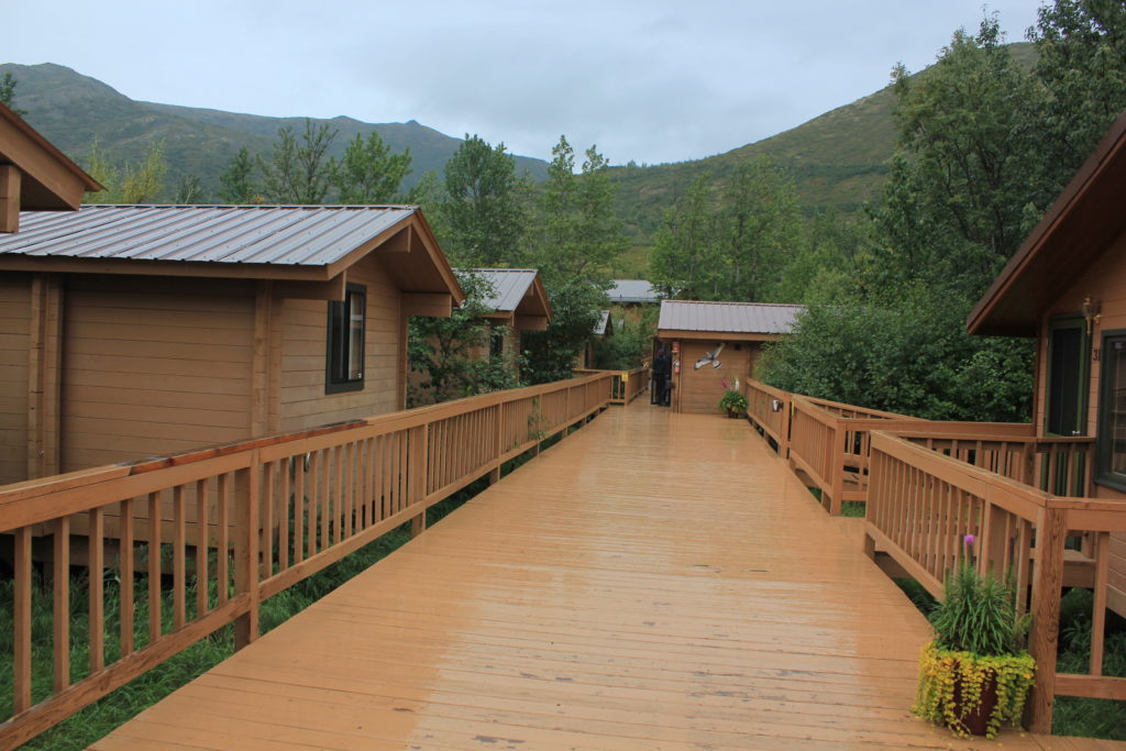 We left at 8:15am and arrived at Denali Station at 3:40pm. There, many of the nearby hotels had shuttles picking up guests. About 20 of us were going to Denali Cabins about 8 miles from the depot.
