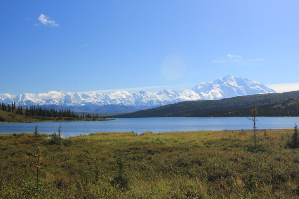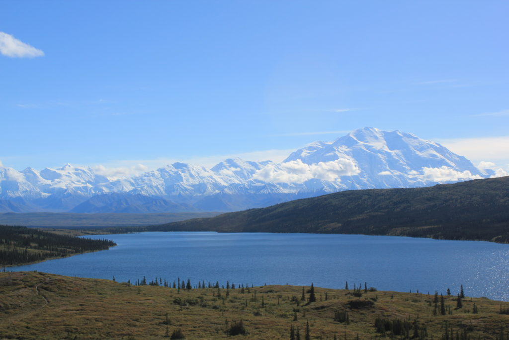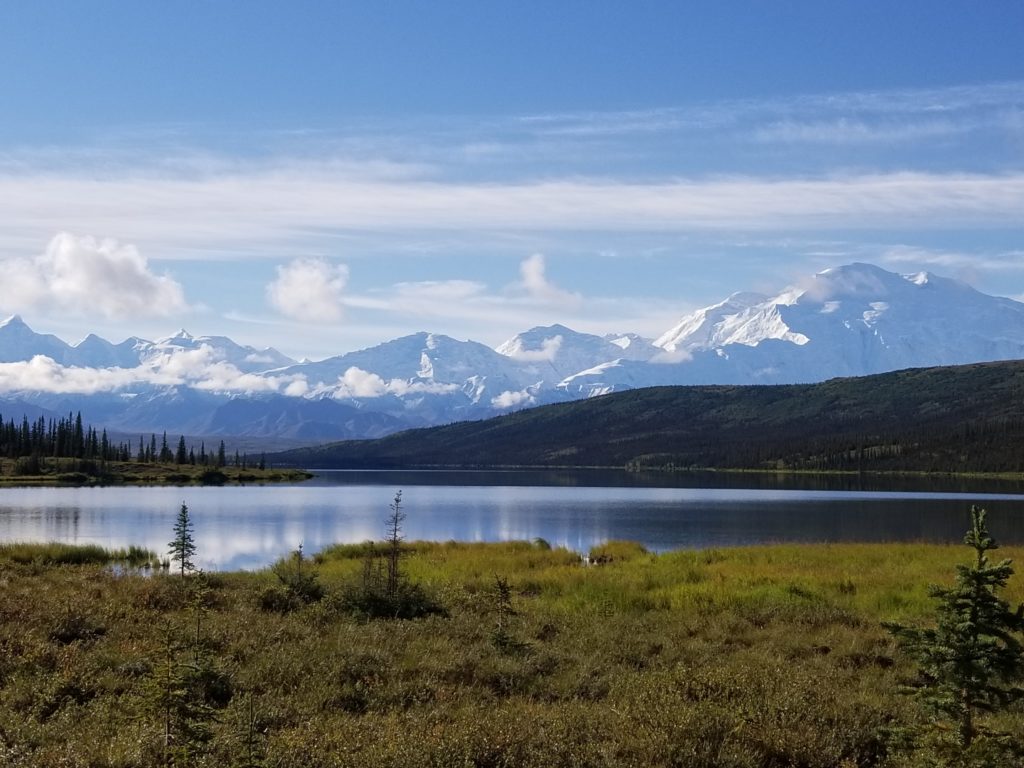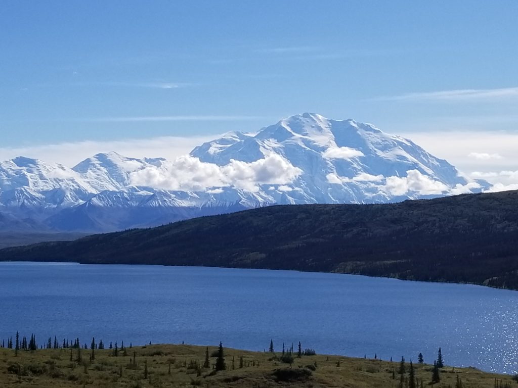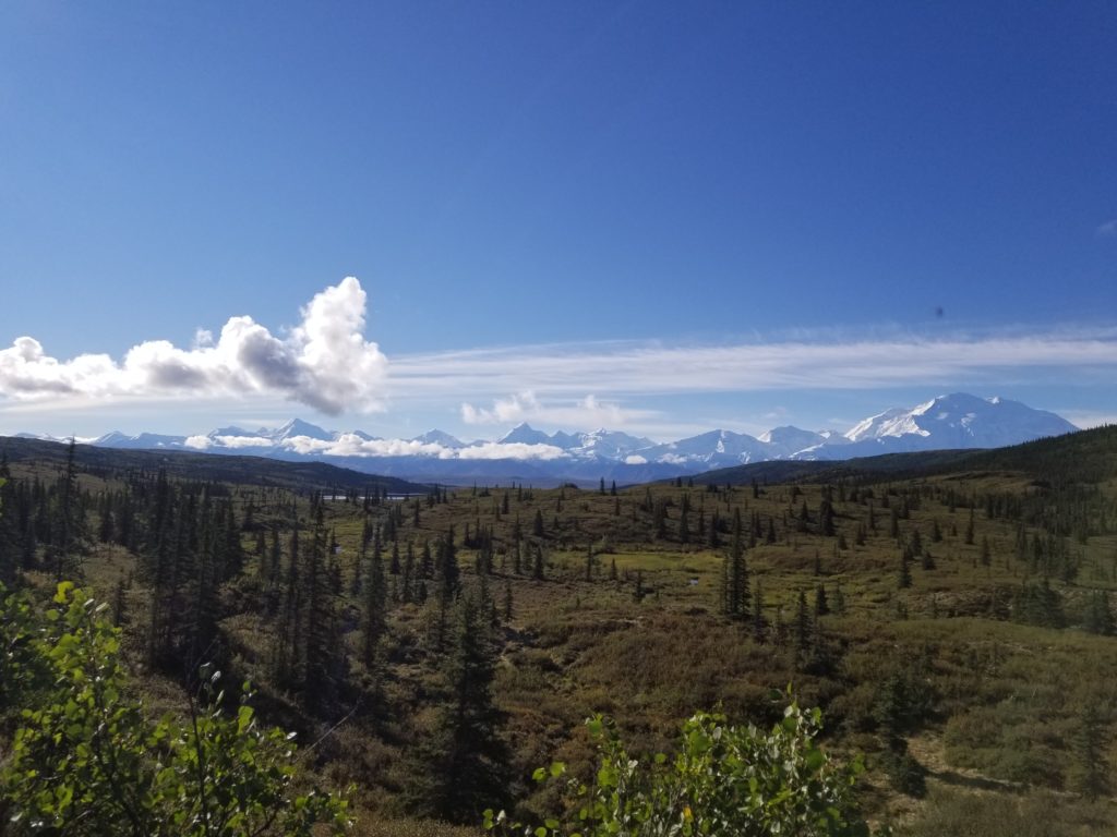 There are small cloud formations as the mountain range creates it’s own weather. Denali is over 20,000 feet above sea level.