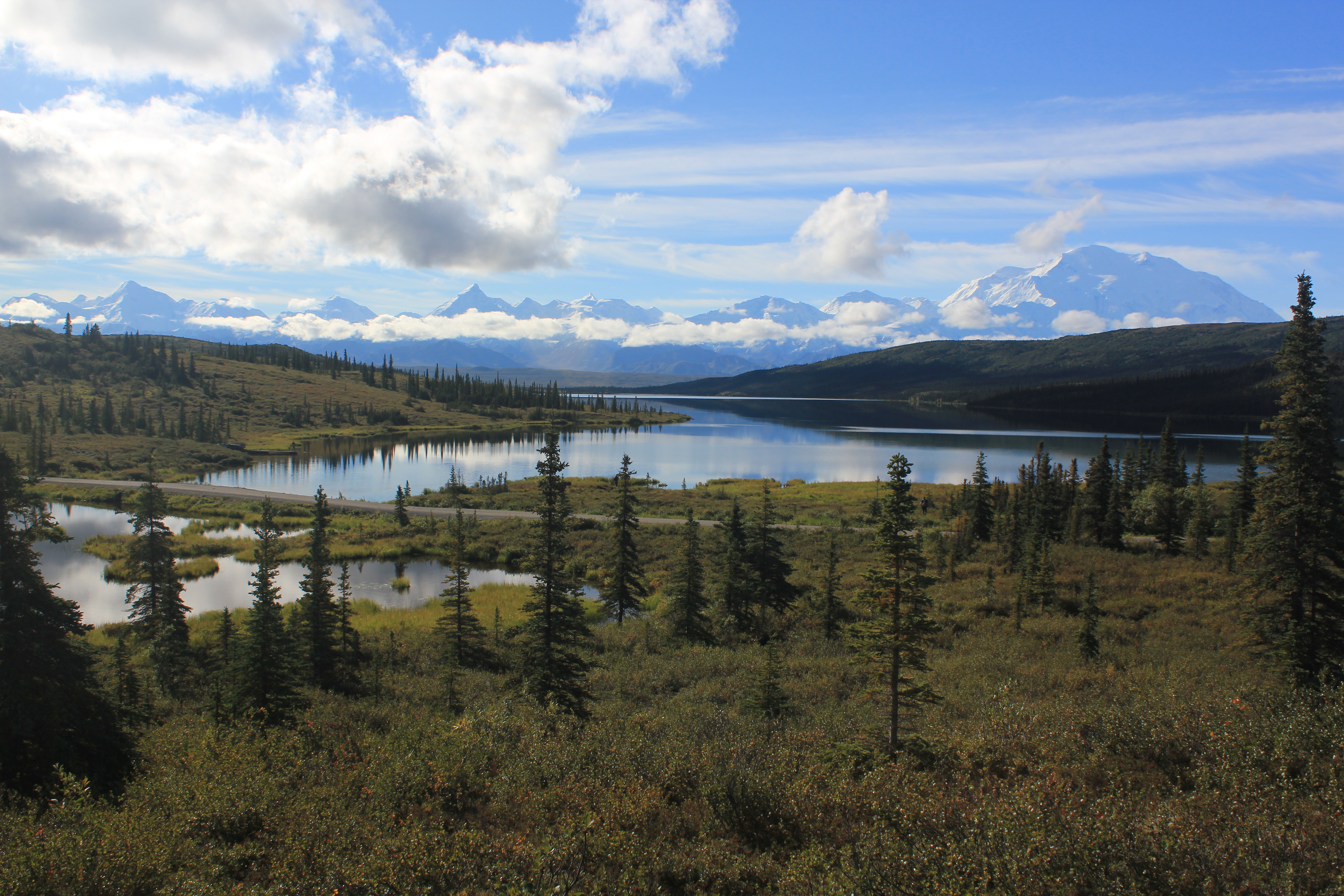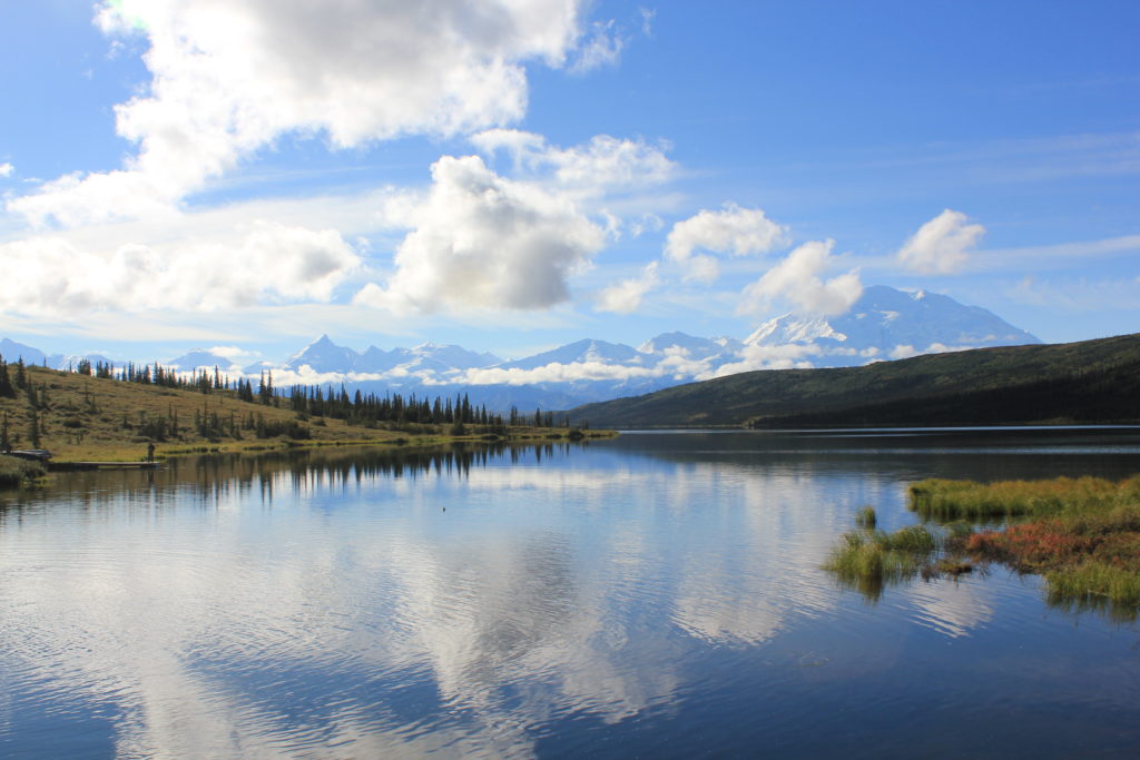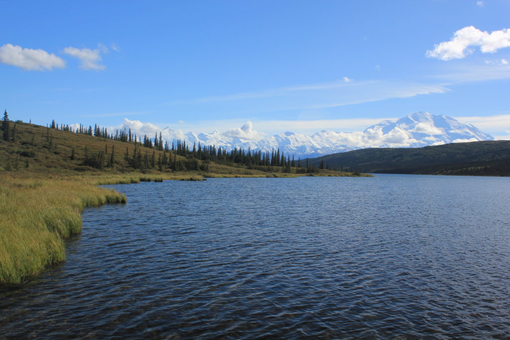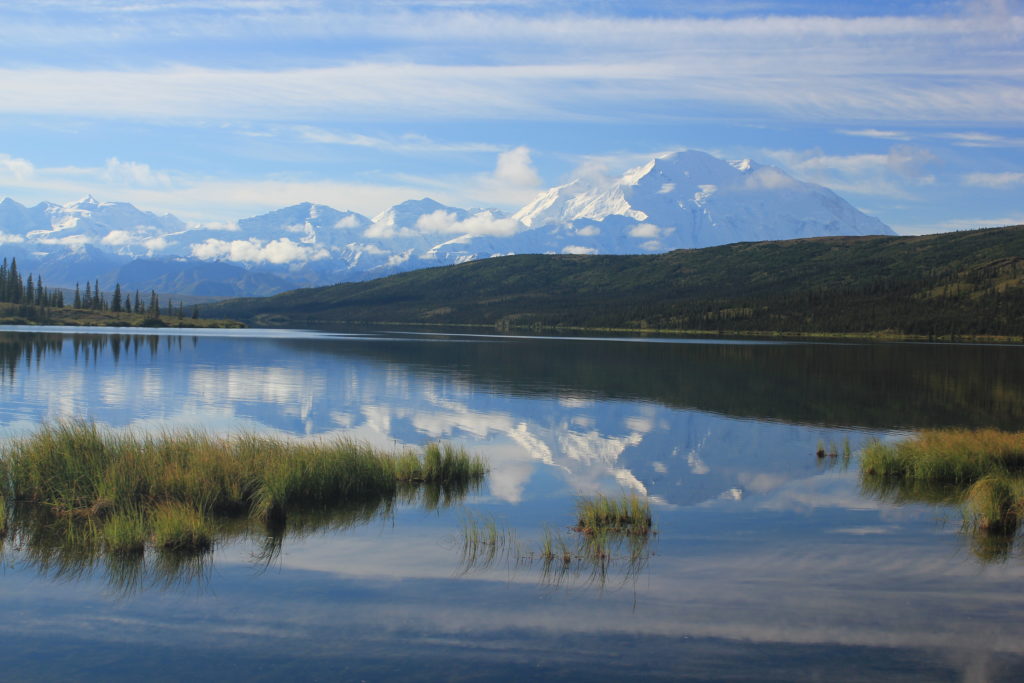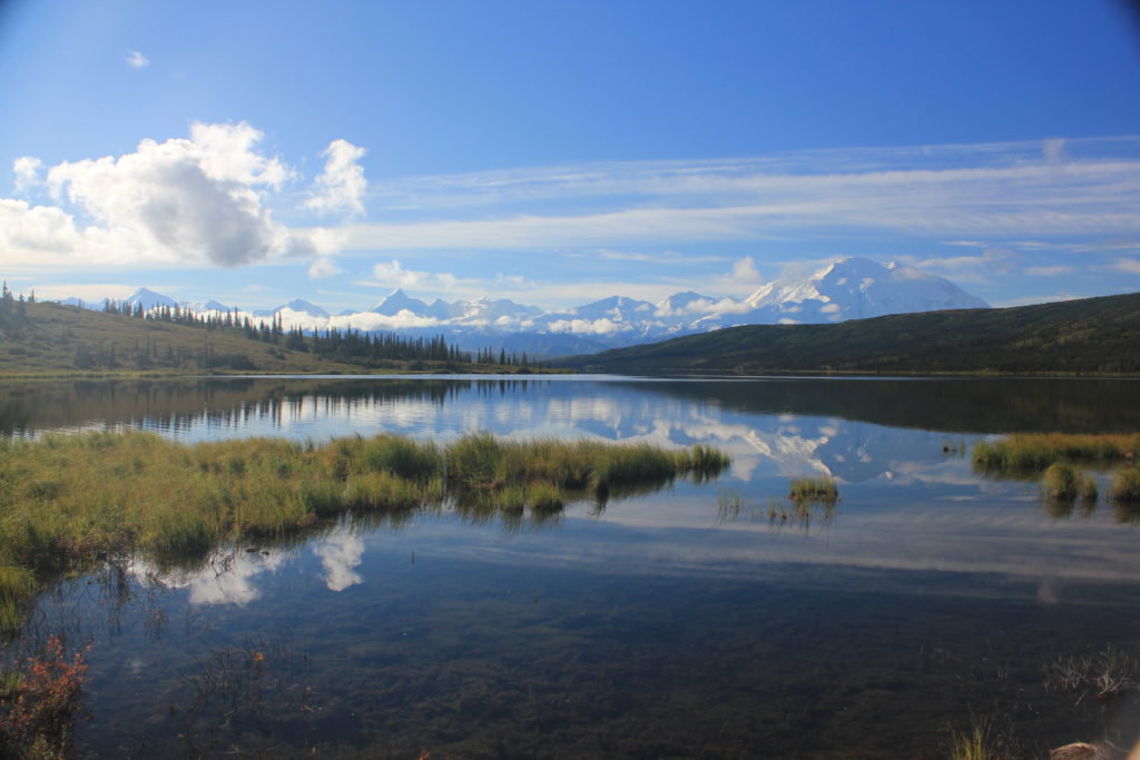 There are small cloud formations as the mountain range creates it’s own weather. Denali is over 20,000 feet above sea level.