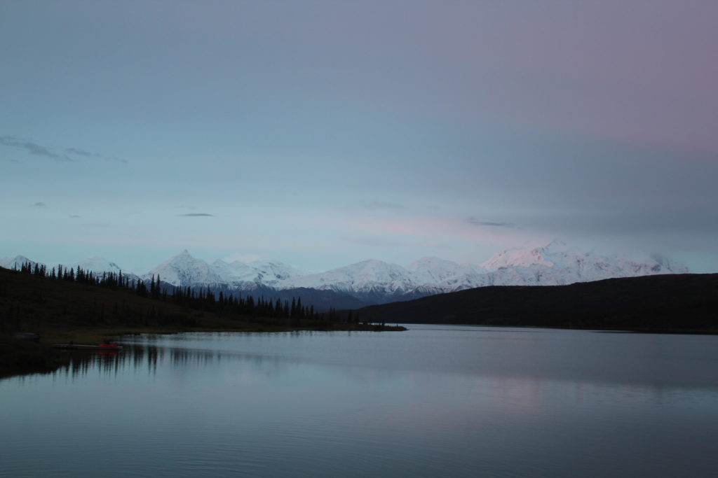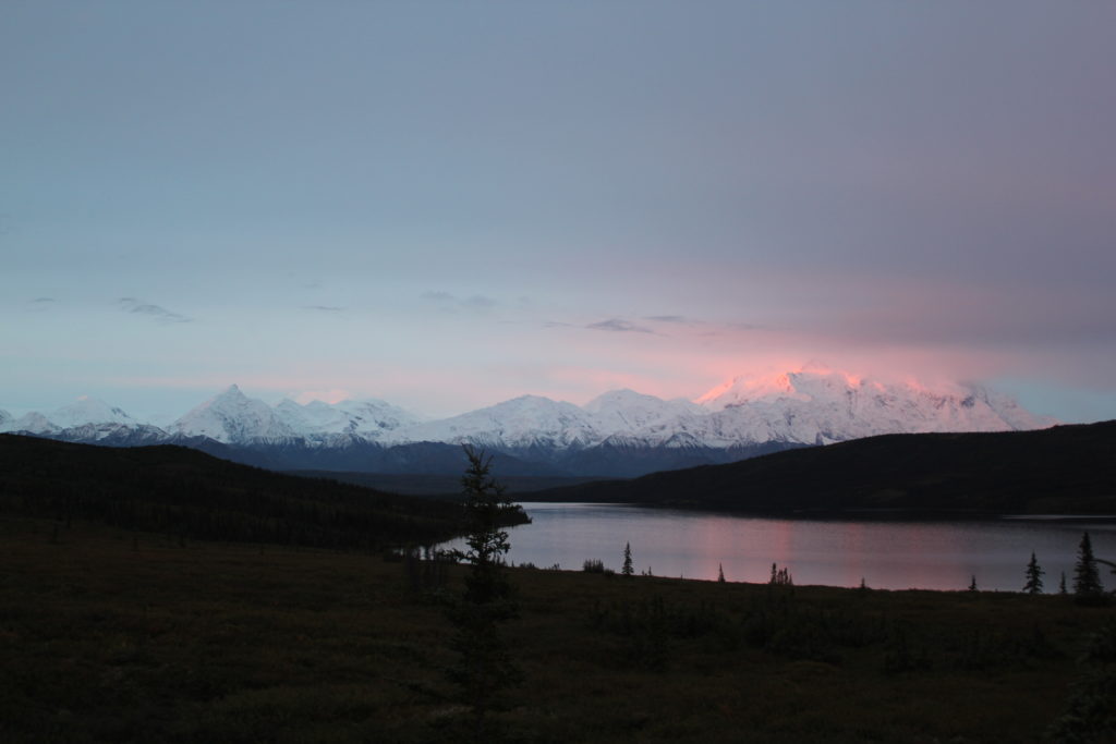 As we approach, the sun is just coming up over the mountains to the east, not yet hitting the summit of Denali. We are able to wait a few minutes…