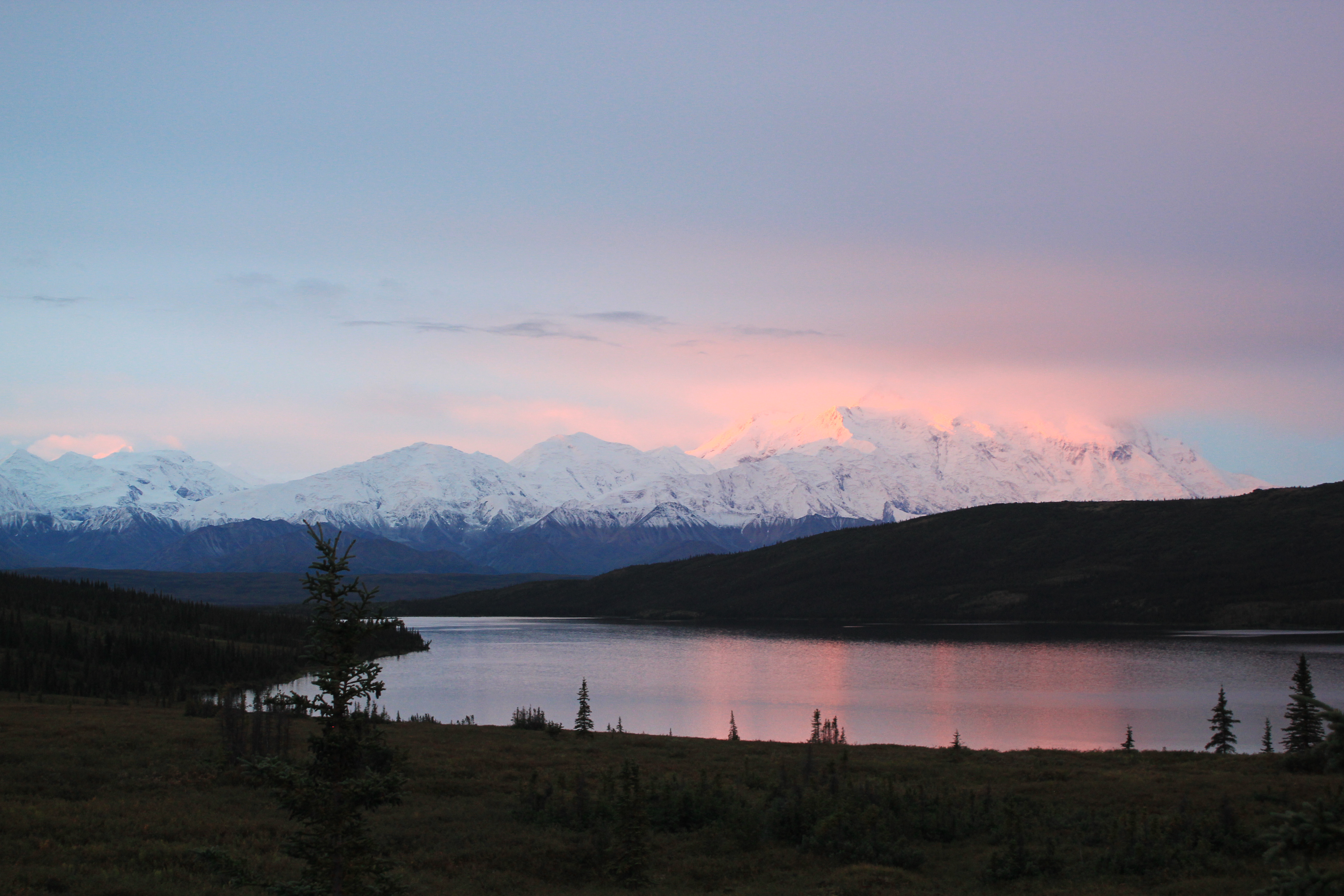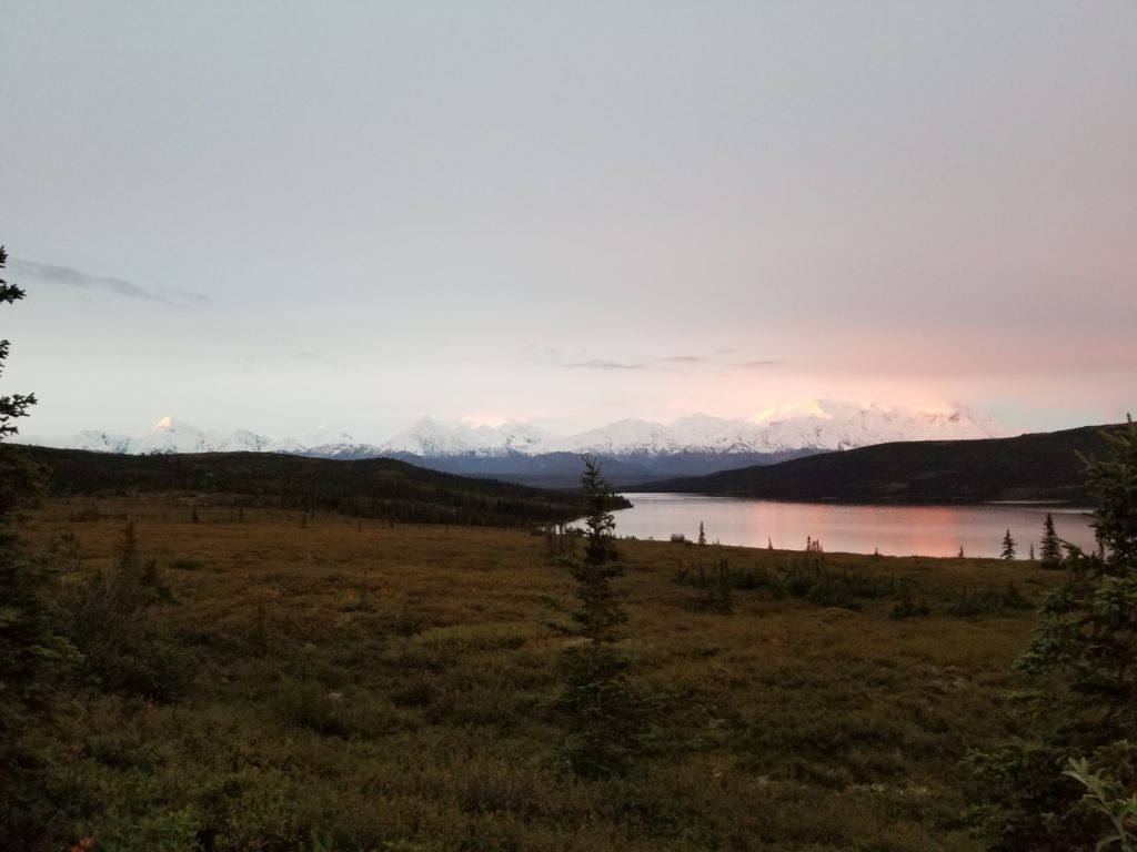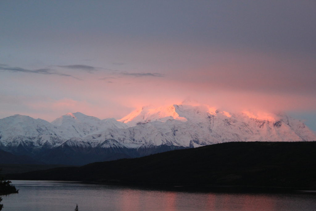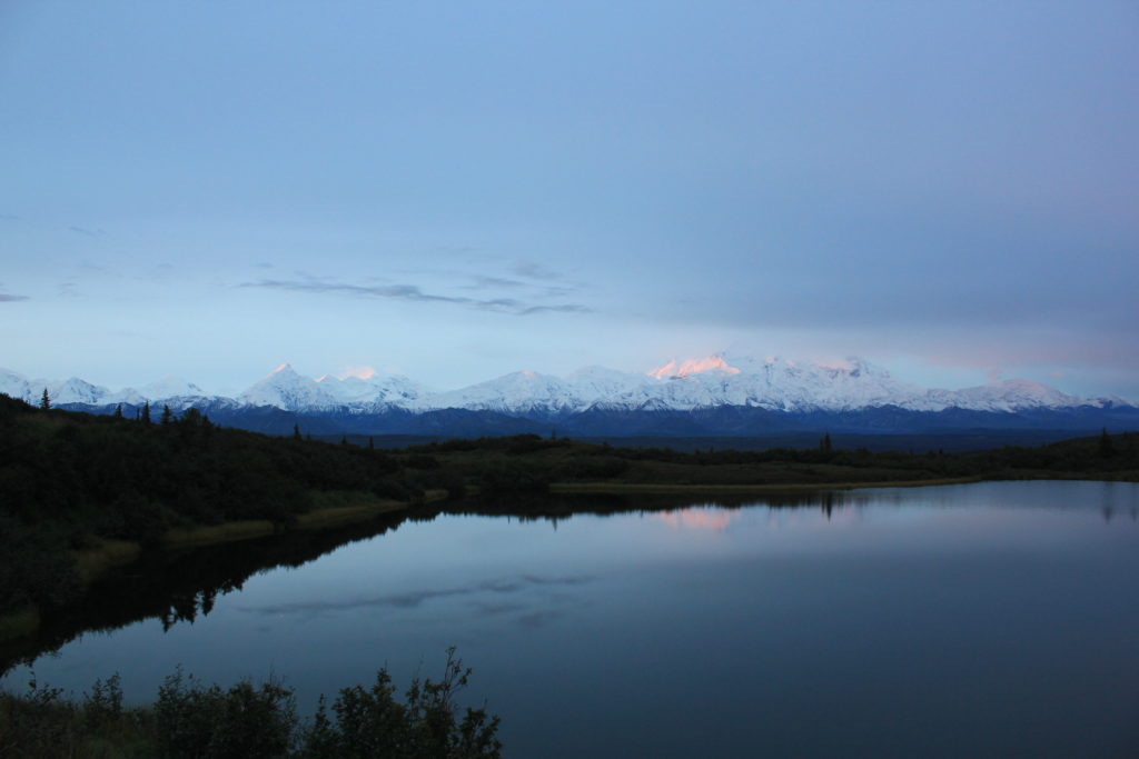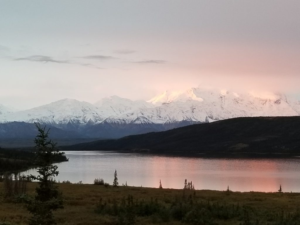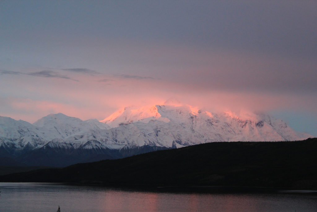 The next morning we must begin our return trip back out the Park Road at 6am. So we get another chance at seeing Denali, in the early morning light!