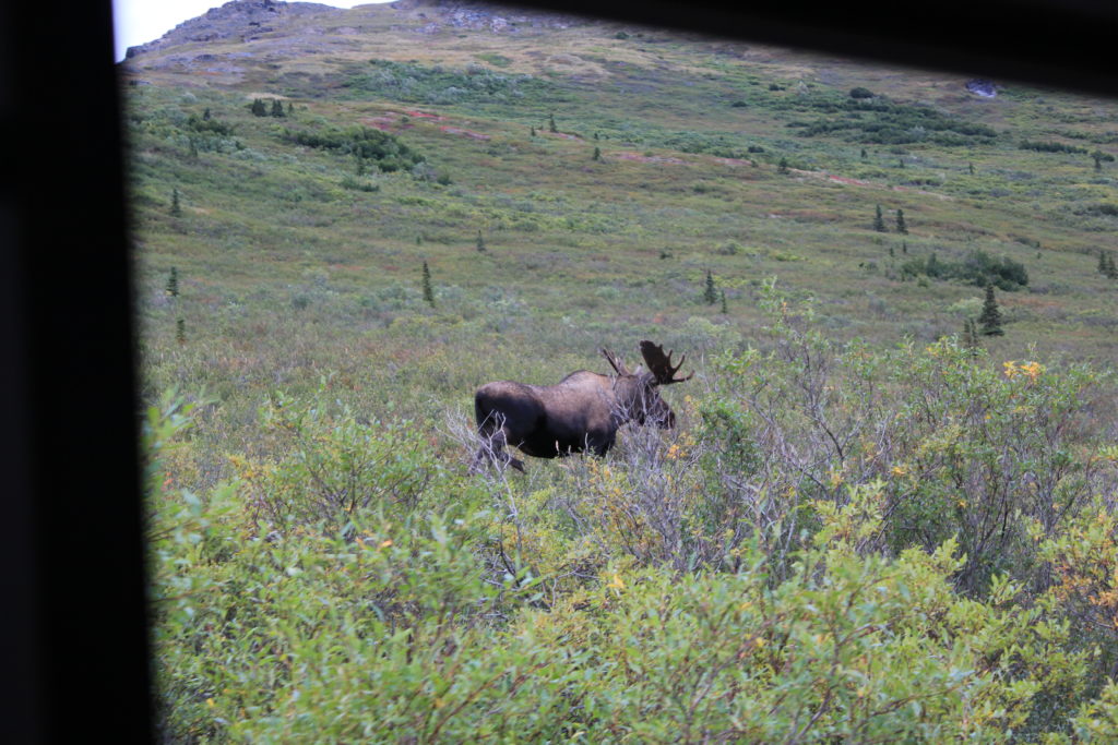 And just before leaving the Park Road, one young bull moose came close to the bus.