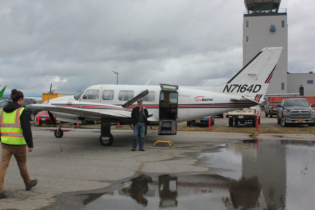 This is our plane and the 70 year old ex-Air Force pilot. Since it was so overcast in Coldfoot, the contingency was to fly to Bettles, about 40 miles southwest of Coldfoot. They can land there using instrumentation while landing at Coldfoot is visual. But there’s no roads in or out of Bettles so I’m not sure what the plan was after that. The pilot would make the call whether to fly into Coldfoot as we got closer.