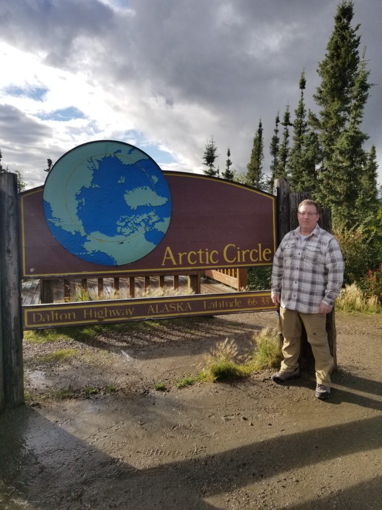 About two hours later we arrive at the Arctic Circle Trading Post, a little roadside stop with a couple of outhouses. It sits at Mile Post 49.5 on the Elliot Highway, which runs for 74 miles between Fairbanks and where the Dalton Highway starts. I’m not sure why they call it the Arctic Circle Trading Post because it’s 120 miles south of the Arctic Circle. But it sure was dark there. A few of the people that were on the bus with me were staying for a couple hours in hopes of seeing the Northern Lights. Four of us switched vehicles to a small van with large windows to continue south to Fairbanks.